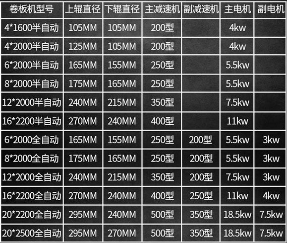 半自動卷板機結構形式為三輥對稱式。上輥在兩下輥中間對稱位置作垂直升降運動,通過絲杠實現上輥的升降,便使所卷制的材料變形,該卷板機是用于金屬板材型材彎曲、變型的一種通用設備,它借助于專用工具或其它設備來完成板材端面的預彎,可以卷制圓形、弧形工件,在石油、化工、鍋爐、水電、造船、工業設備安裝以及機械制造行業中有著廣泛的應用。該機器采用倒順開關(已安裝在卷板機上)來實現卷板的正、反轉,檢查機器無誤后,調節絲杠讓上輥壓至板材表面,把倒順開關打到“倒”“順”視現場板材的放入端而定讓電動機正轉還是把反轉,卷制一邊后,手動調節絲杠讓上輥壓緊板材在“倒”“順”卷制,如此循環直至達至要求為止。